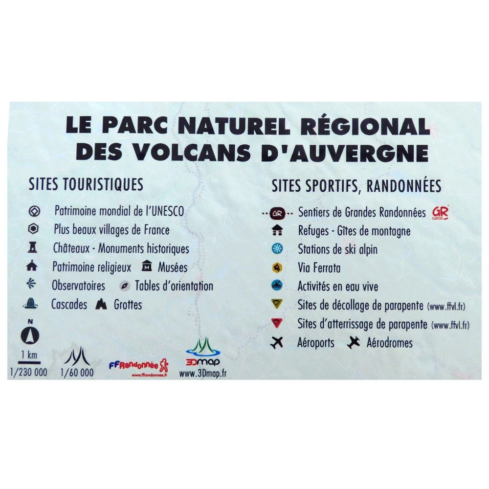 Caractéristiques de la carte du Parc Naturel Régional des Volcans d’Auvergne :