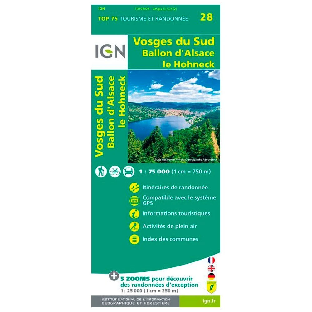 La carte IGN des Vosges du Sud est un modèle à l’échelle 1/75000 sur papier standard, qui vous permet de bien vous repérer dans la zone méridionale de cette belle région de France. Elle fait partie du Top 75 de chez IGN, une sélection qui permet de découvrir 75 régions d’exceptions.