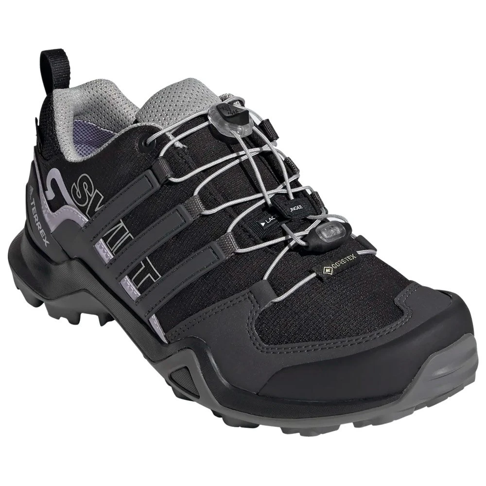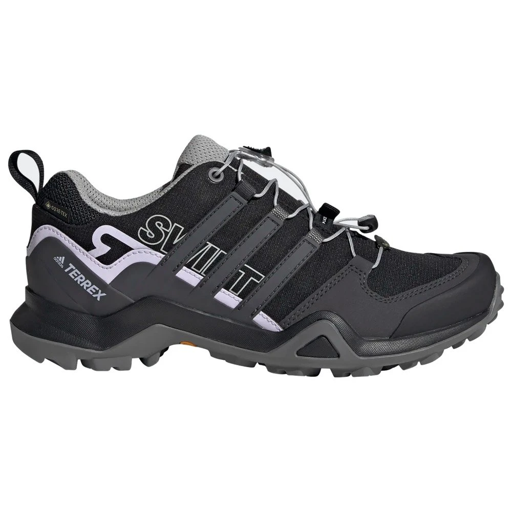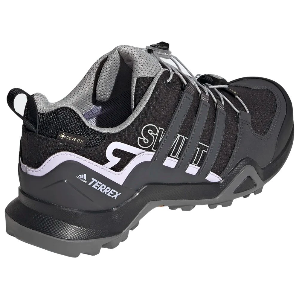 Avec la chaussure de randonnée Terrex Swift R2 Gtx, vous n’aurez aucun soucis à vous balader même dans les ruisseaux : cette chaussure dispose d’une membrane en GORE-TEX imperméable qui garde vos pieds au sec, et sa semelle extérieure en caoutchouc Continental vous assure une excellente accroche sur terrains secs ou mouillés. Son système de laçage vous offre un maintien du pied optimal et durable. La semelle intermédiaire en EVA soutient chacun de vos pas avec un amorti stable et confortable.